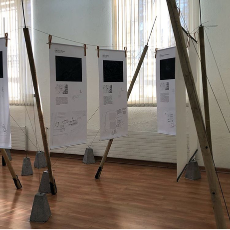 La exposición Vivienda rural del Valle Central es una muestra que exhibe los resultados de una investigación sobre este tema. El diseño encuentra en el objeto de estudio la lógica compositiva de un espacio donde el vacío entre las partes resulta ser la clave en el sistema de relaciones de un programa que, en estos casos, mezcla lo doméstico y lo productivo. El montaje no pretende más que construir tres elementos; Un tendedero de láminas compuesto de rollizos con gomas de cámaras de bicicletas en sus bases para la fricción, tensados con alambres que se comprimen por el peso de poyos de hormigón. Un muro de fotografías que retrata en un ensayo la imagen de la vida en el campo y finalmente un habitáculo que configura el acceso al recinto directamente desde la calle y que construye una penumbra para la proyección de un cortometraje sobre la investigación. De este modo el conjunto no es más que una sumatoria de piezas que en su disposición y distancias articulan un recorrido a través de la muestra.